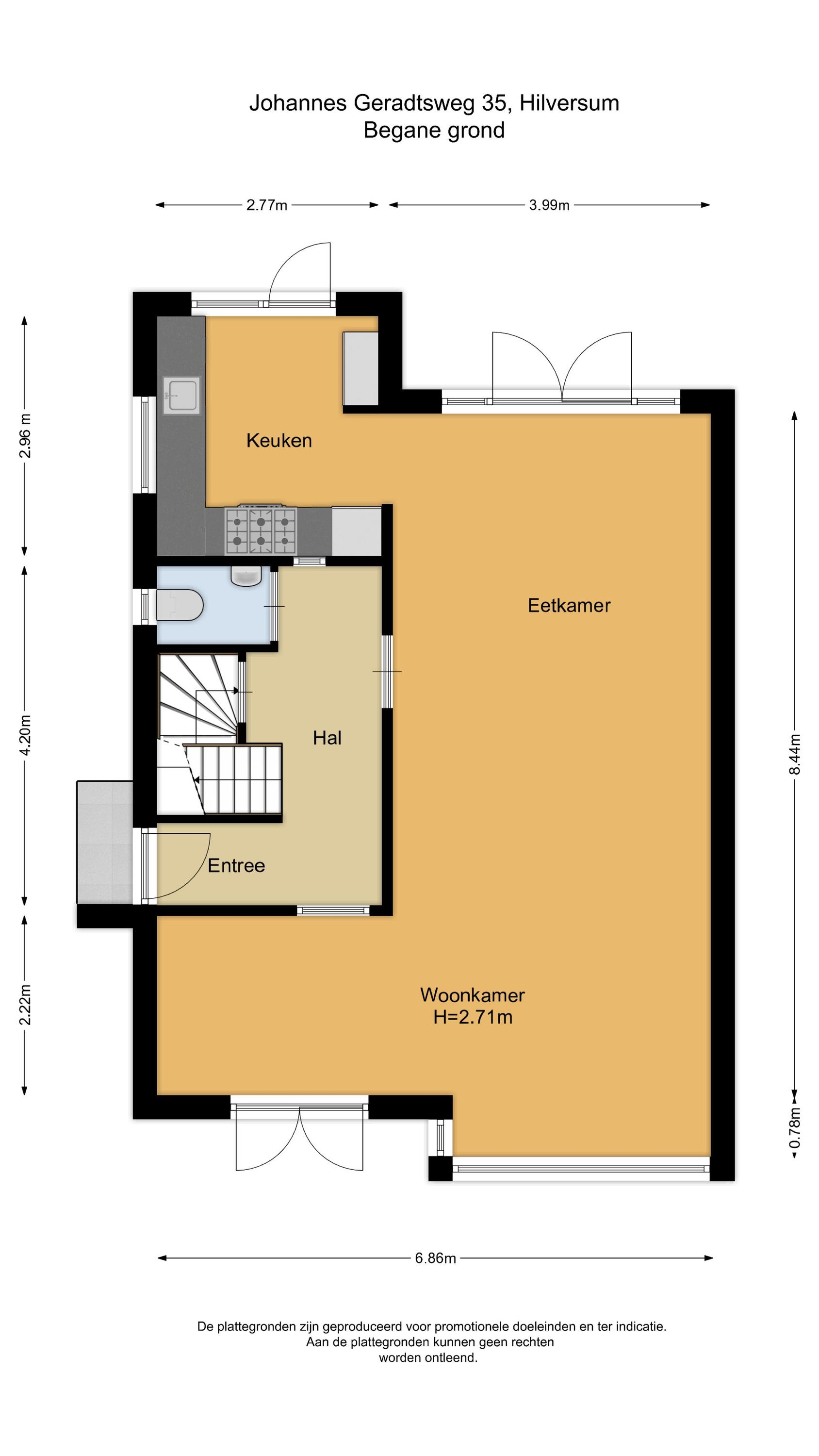 De woning heeft een overdekte entree en ruime, lichte hal. Trapopgang naar de 1e verdieping, deur naar goede en koele provisiekelder en naar het toilet met wastafeltje.