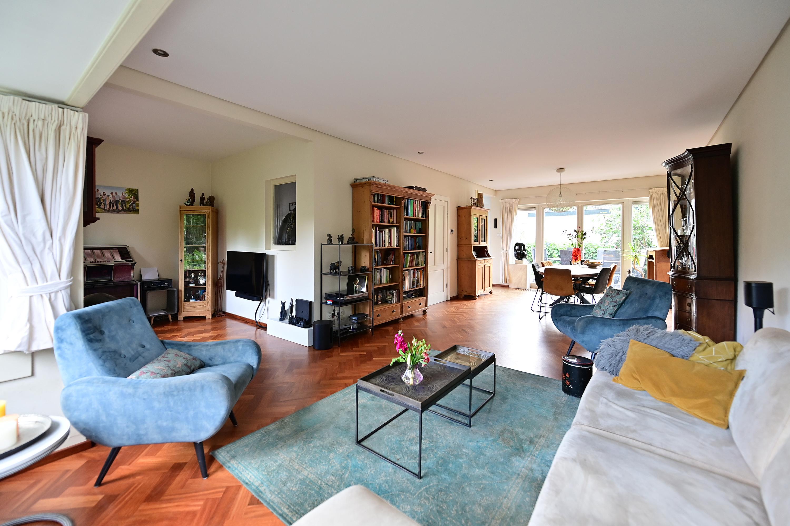 Vanuit de hal loopt u naar de eet- en woonkamer. Deze ruimte heeft een in visgraat- motief gelegde eiken parketvloer. De woonkamer is ca.42m2 en licht.