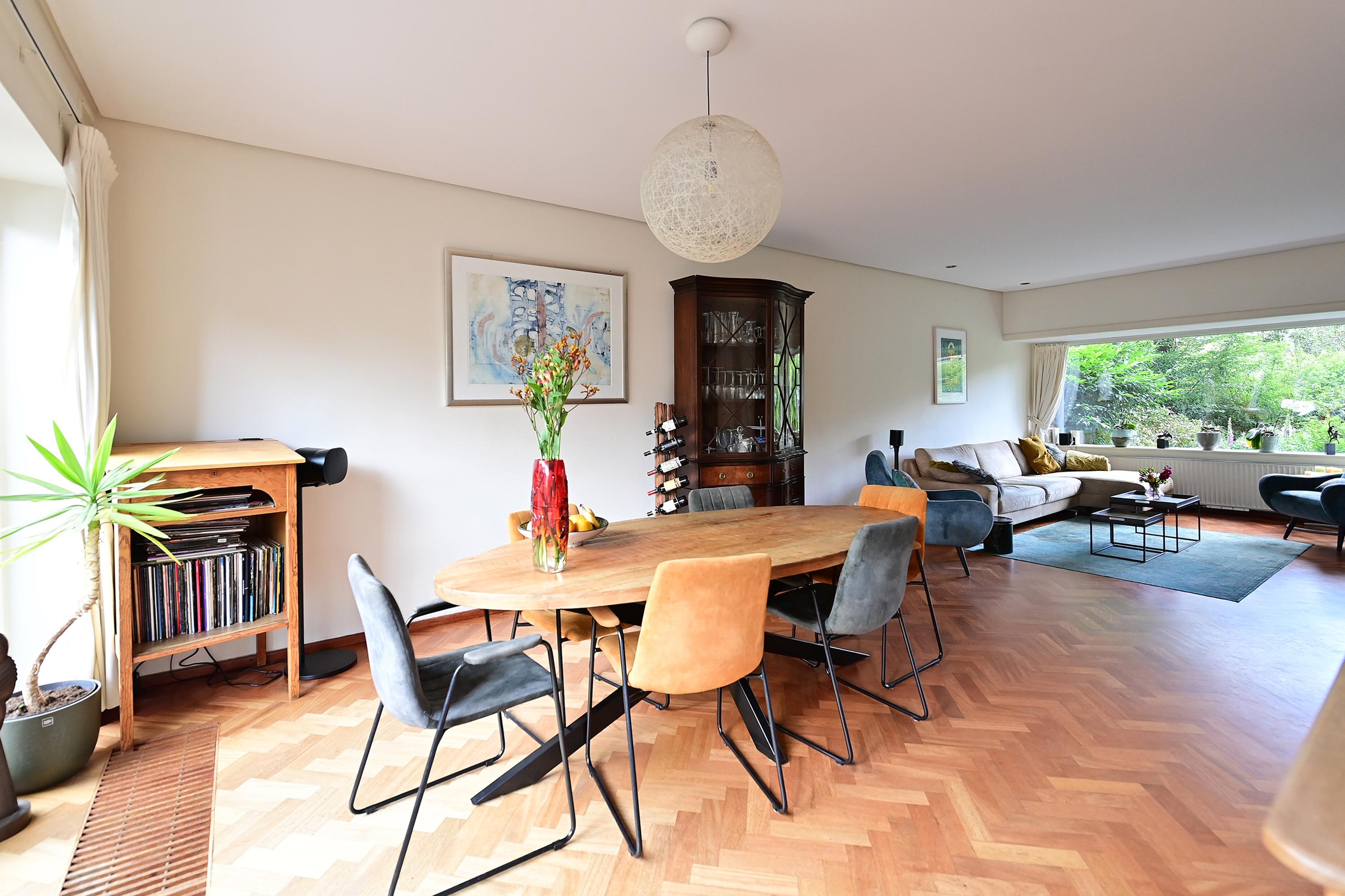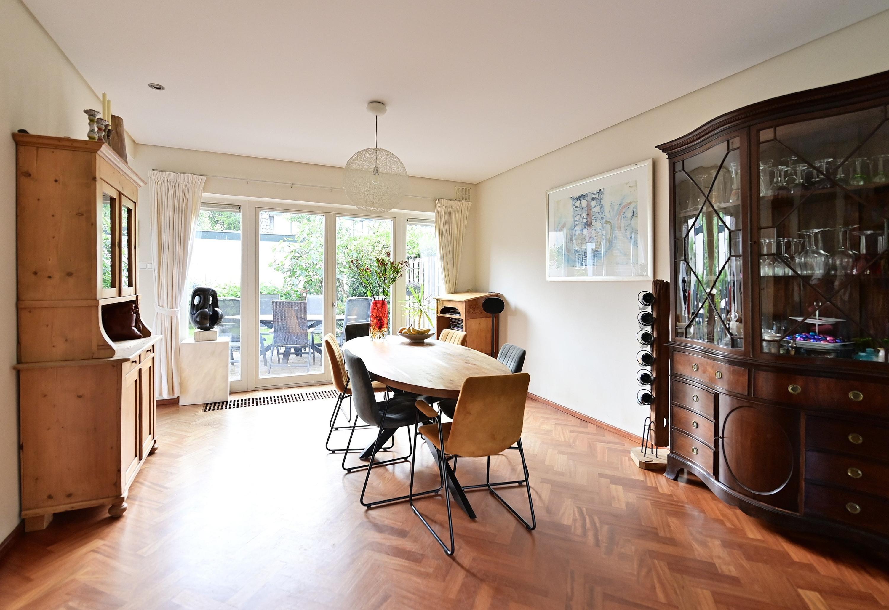 Ook bij de eetkamer achter in de woonkamer heerlijk openslaande deuren naar de achtertuin. Achter bij de eetkamer loopt u de moderne half open keuken in.