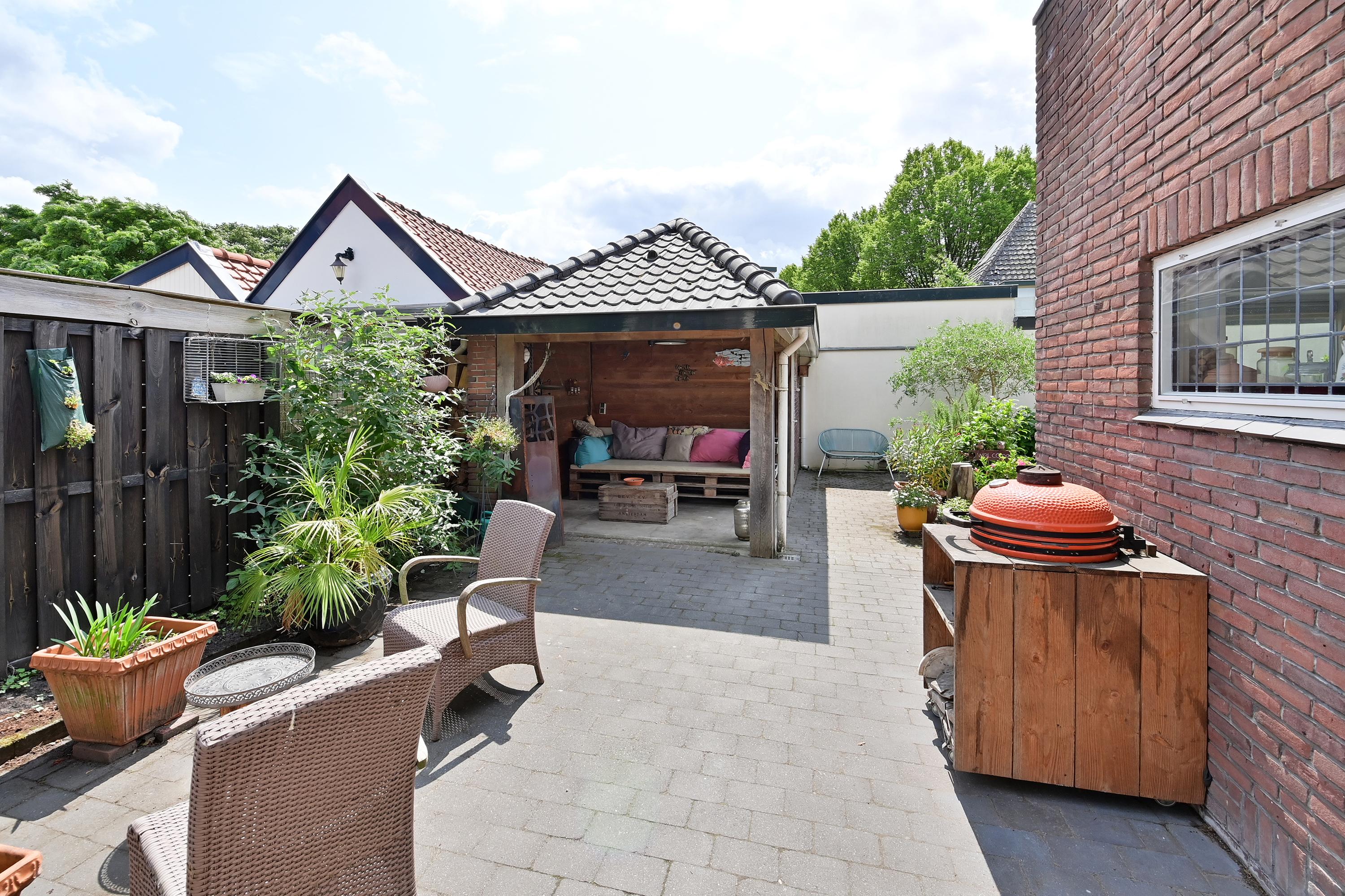 In de achtertuin is een berging met heerlijke zithoek onder overkapping. (2,60x 1.93)