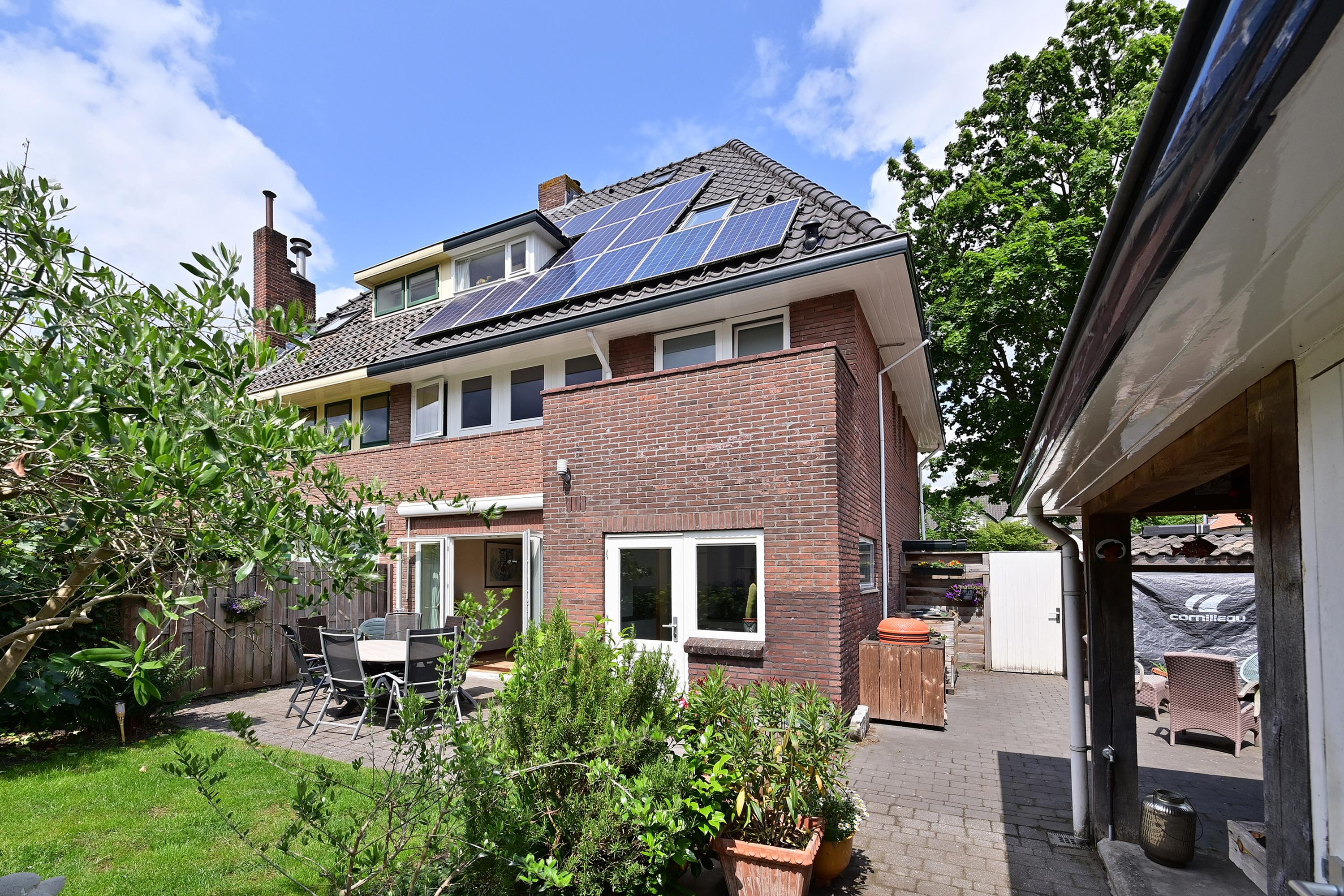 Goed onderhouden, charmante, zeer ruime jaren´30 twee-onder-een-kapwoning. De grote woonkamer beneden en de vijf slaapkamers maken dit huis een uitstekende gezinswoning. De woning staat op een ruim perceel. De diepe voortuin geeft ruimte en afstand ten opzichte van de weg. De oprit, met ruimte voor meerdere auto´s, biedt u altijd een parkeerplaats. Opvallend is de rust en het beschutte gevoel in de op het zuiden gelegen achtertuin, een fijne plek om gezellig buiten te zijn.