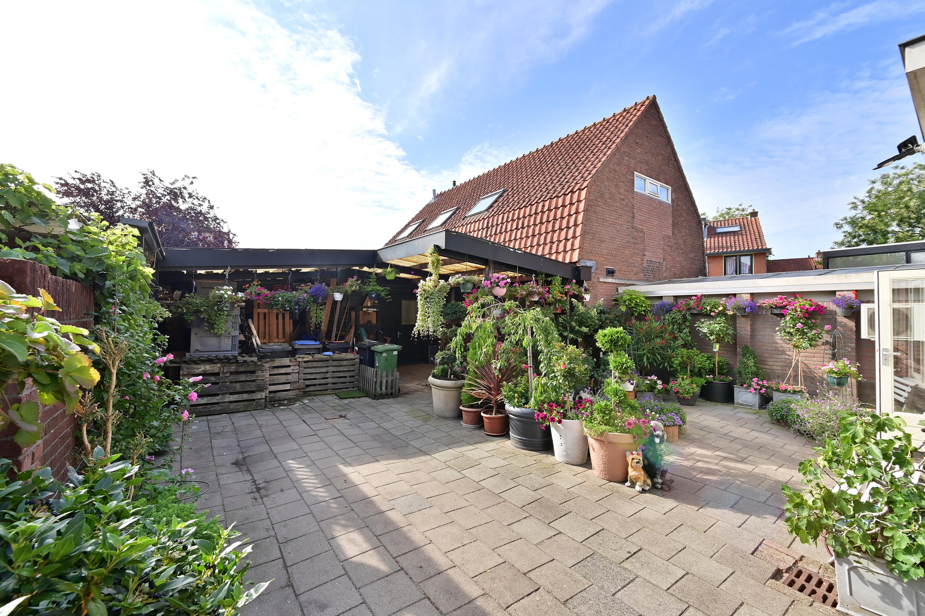 Ook te gebruiken als werkplaats, praktijk, studio, kantoor, magazijn ed. Ook om te bouwen tot 1 ruime of 2 kleinere woonruimtes (appartementen) van ca. 70m2. Nu is er een grote overdekte buiten ruimte voor opslag en parkeren. Als je deze overkapping geheel of gedeeltelijk weg haalt ontstaat er een grote achtertuin/parkeerterrein, of tuin voor de nieuw te ontwikkelen woningen.