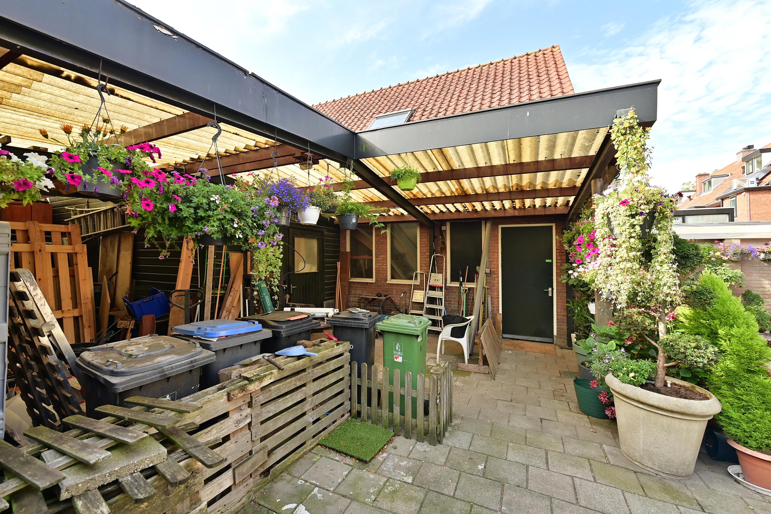 Vrijstaand pand achter no 98. Bereikbaar met auto via gang naast pand 98. Nu in gebruik als werkplaats en magazijn voor een zadelmakerij.