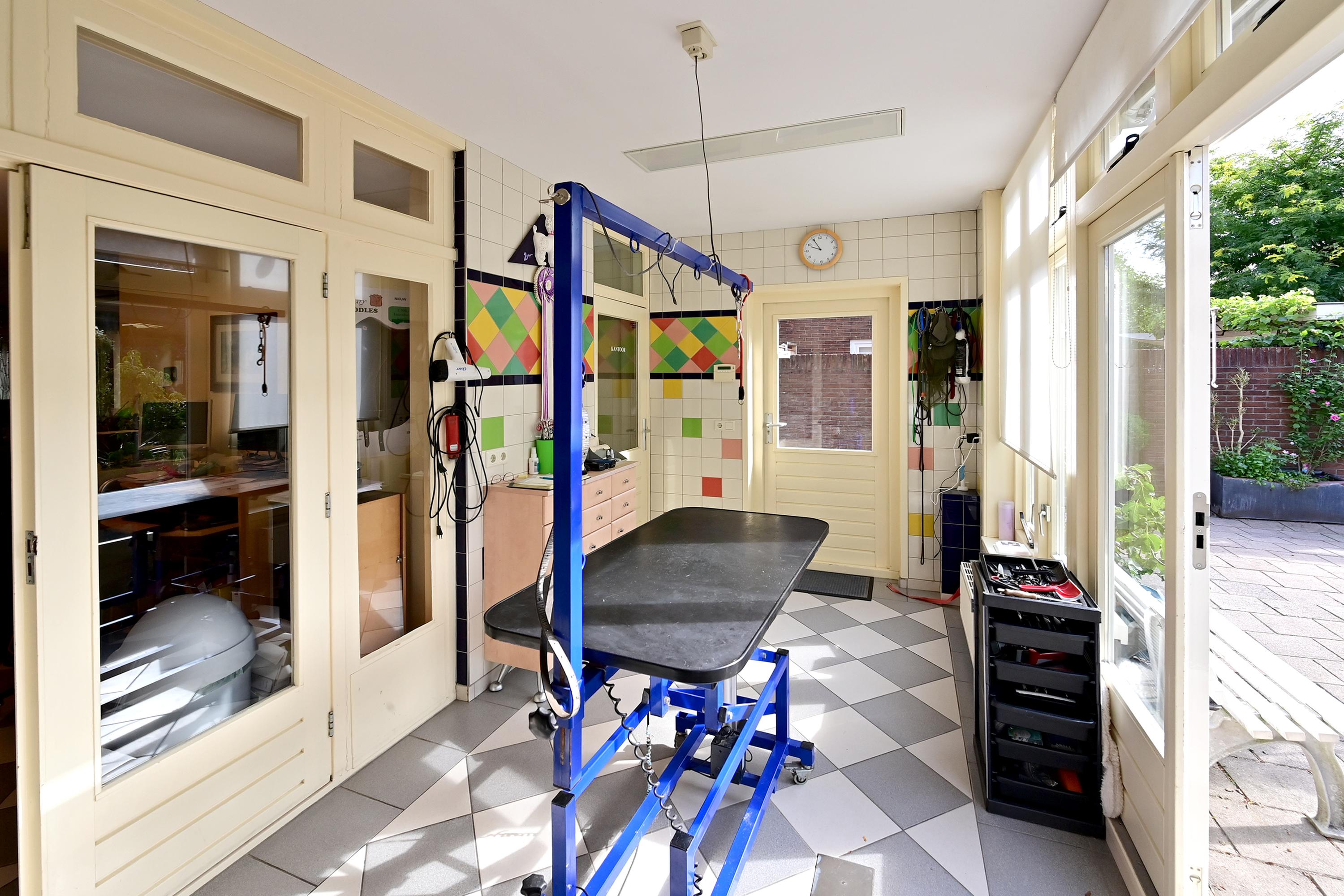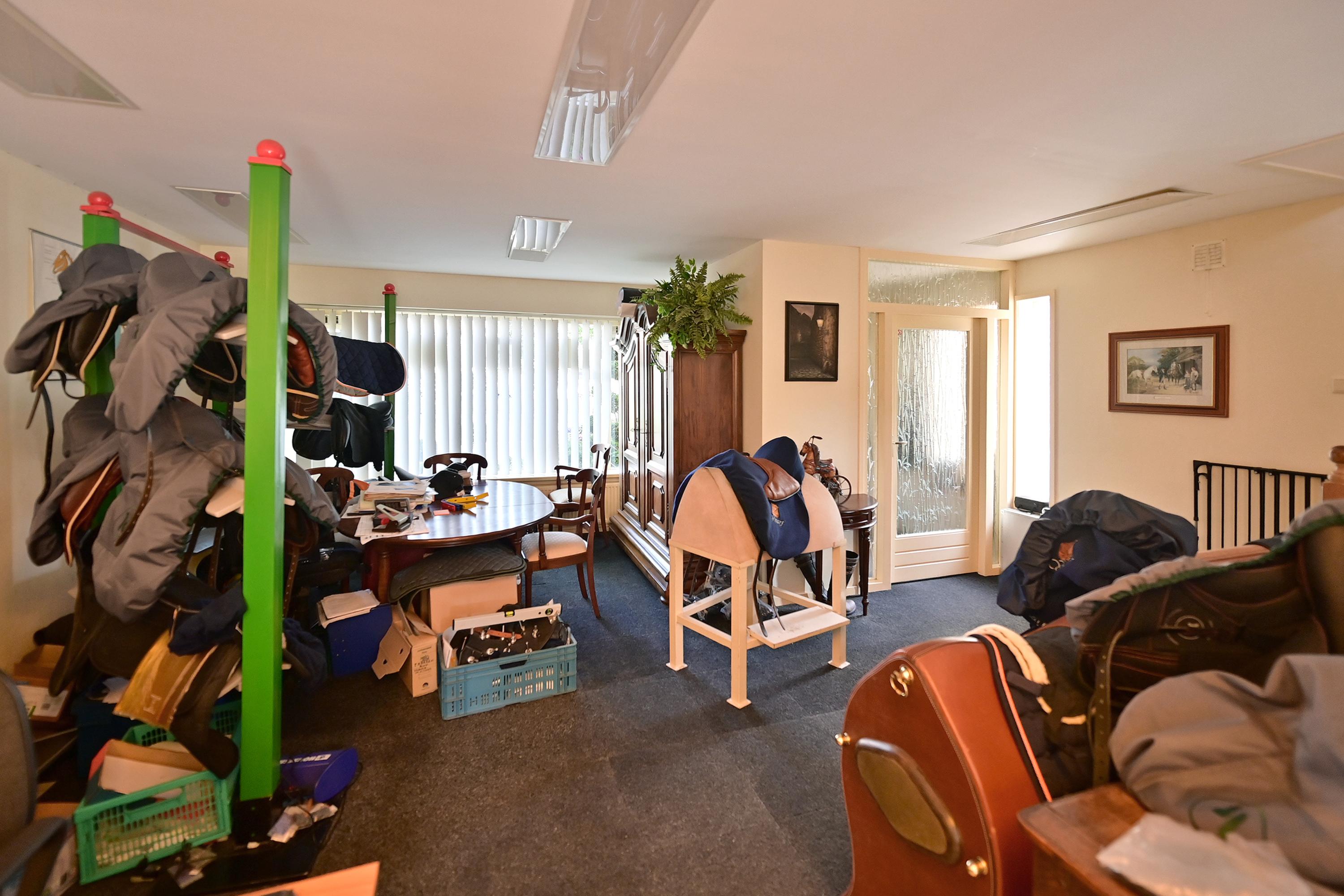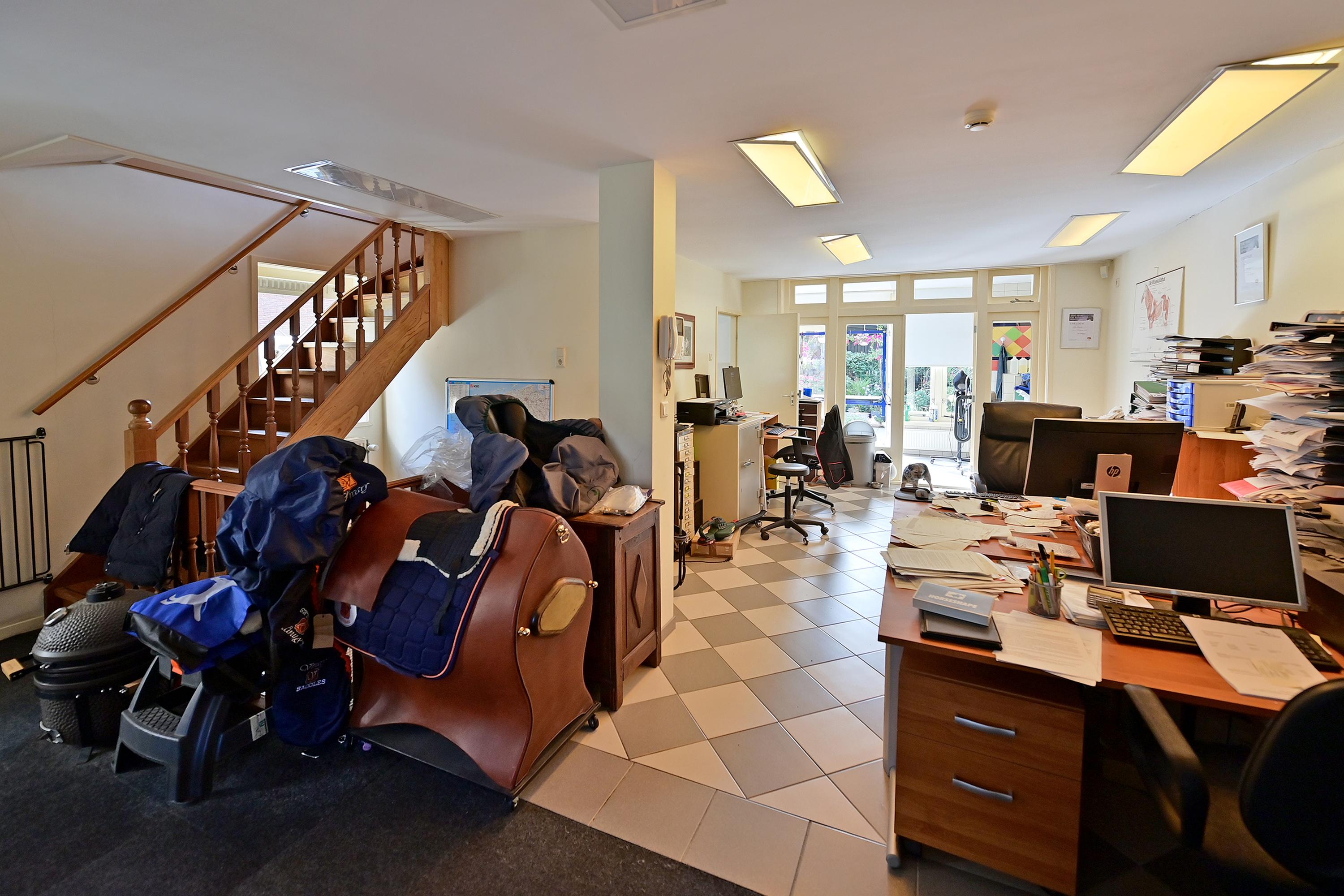 Begane grond is nu in gebruik als kantoor en werkruimte.