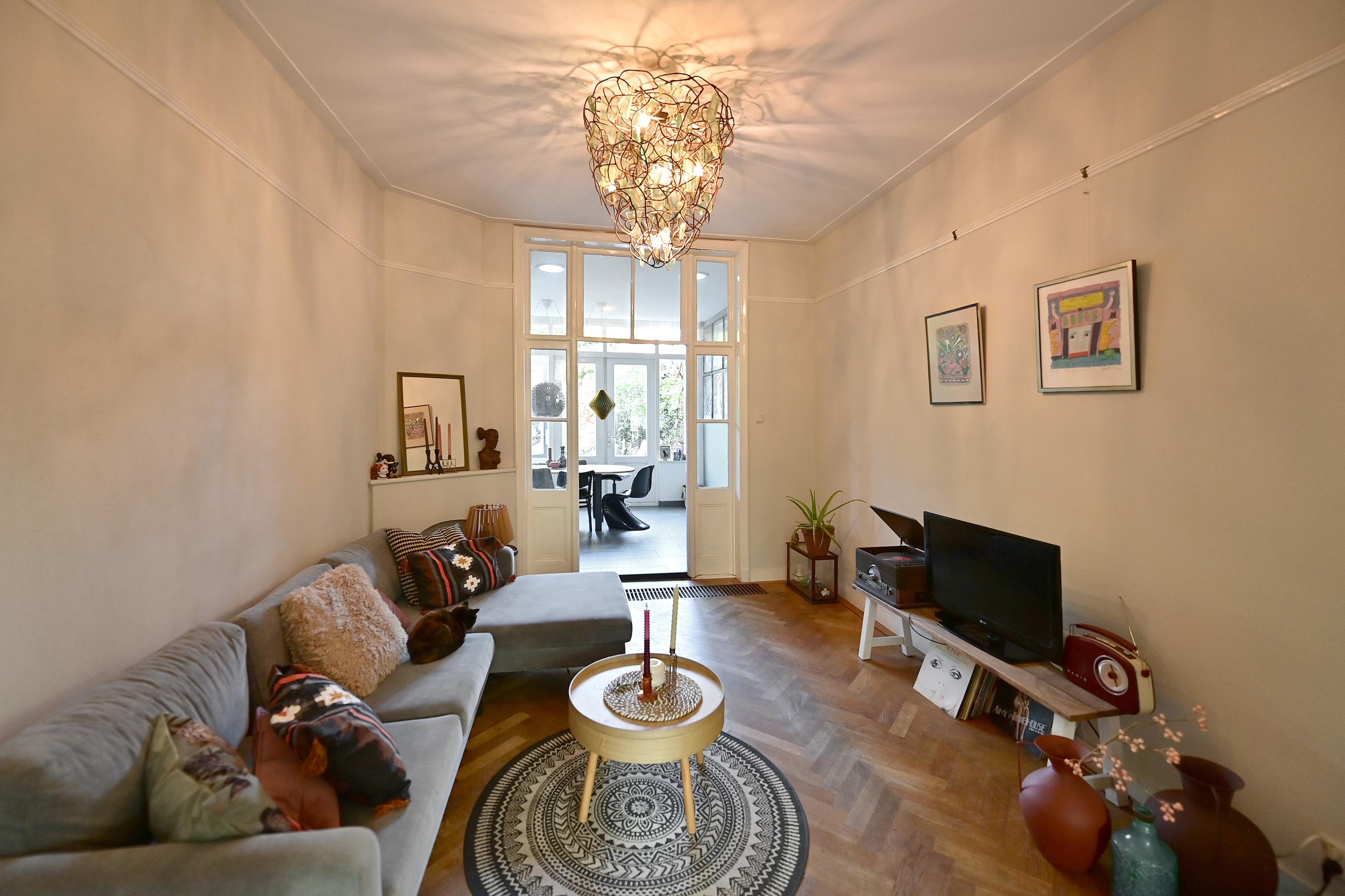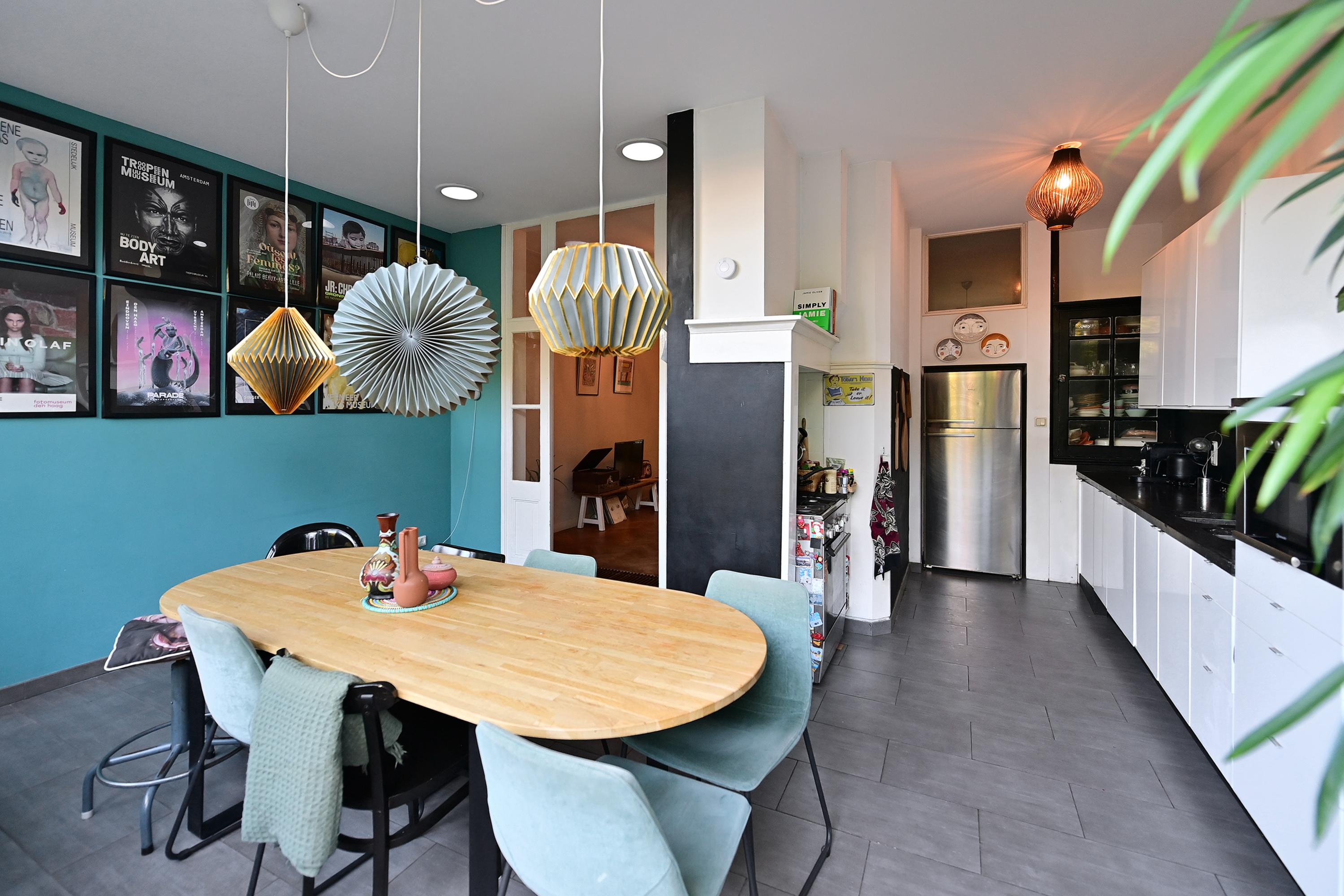 In the heart of the quiet Bloemenkwartier neighborhood in the beloved Hilversum Zuid, we are offering this charming, characteristic, and extended middle house with an extra floor (living area of approx. 150 m²) with a spacious 10-meter-deep backyard facing west with a wooden shed.