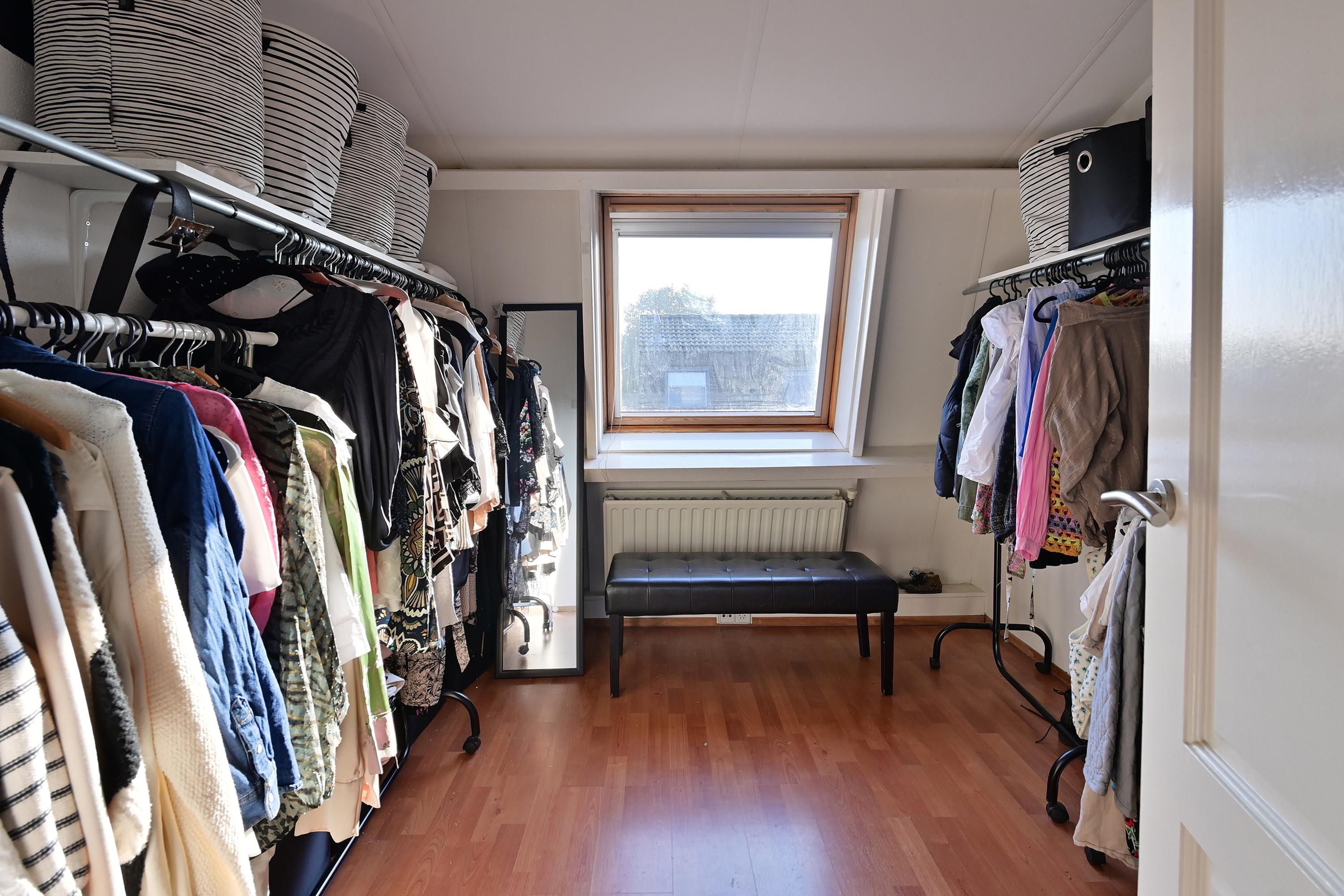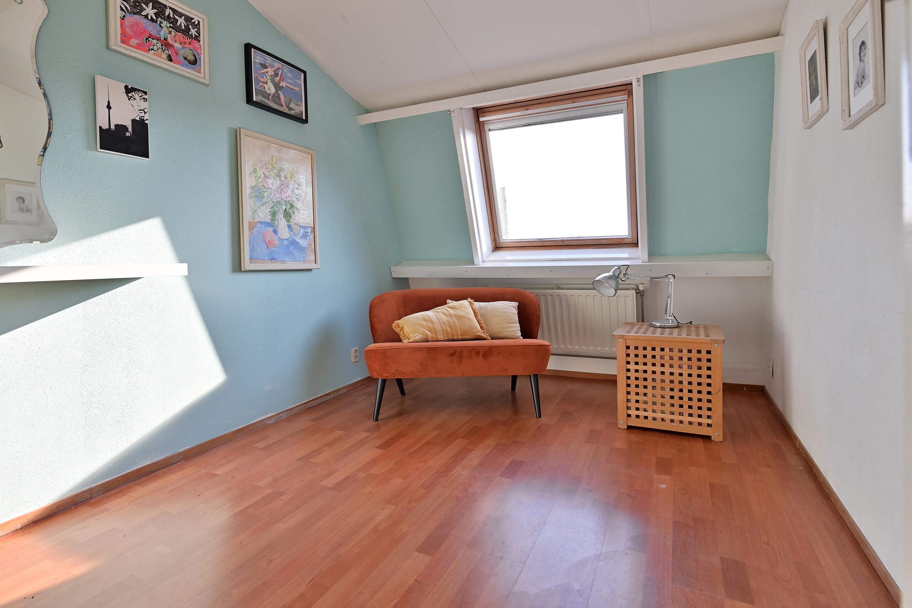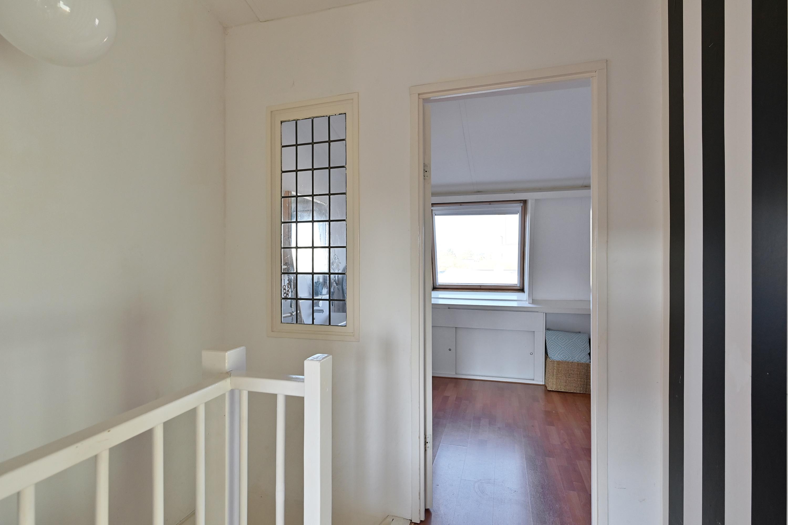 Via een vaste trap bereik je de tweede verdieping die in 2000 is gerealiseerd. Deze bestaat uit een overloop en drie slaapkamers, de grootste kamer ligt aan de achterkant van de woning. Aan de voorkant van de woning nog twee slaapkamers waarvan er een gebruikt wordt als walk- in closet. Deze drie kamers zijn heel licht door de grote kantelramen.